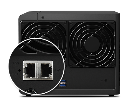DS416 內(nèi)建支持故障移轉及 Link Aggregation 的雙網(wǎng)絡埠,在其中一個網(wǎng)絡埠故障的狀況下,仍可確保聯(lián)機繼續(xù),降低服務中斷的可能性以及因停機所造成的昂貴成本。此外,Link Aggregation 充分發(fā)揮雙網(wǎng)絡埠的優(yōu)點,可提升連接速度,突破單一網(wǎng)絡線或網(wǎng)絡埠的速限。